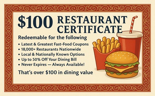 Buy 1 Tee-Shirt → Get $100 Restaurant Certificate